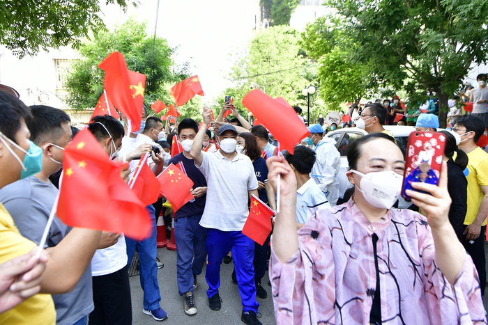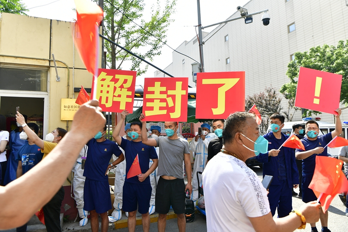 上午9时30分,伴随着如意园应急指挥部副总指挥、潞邑街道党工委副书记王建伟一声号令,如意园门口同时矗立起三个大字:解封了。居民们脸上洋溢着笑容,挥舞着小旗鱼贯而出,人群里不乏感激的声音。