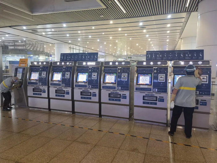 京港地铁4号线北京南站作为换乘站及高铁接驳站,严格执行各区域的全面清洁消毒。车站采用全新风模式,列车保持最大通风量不间断通风。增加车站卫生间消毒频次;加强对车站内安检机、闸机、自动售票机等与乘客密切接触设备的消毒,确保每1小时消毒1次。列车每天在出库前、折返及回库后都会进行全面清洁消毒。车站工作人员和承包商均佩戴N95口罩,按计划定期开展核酸检测,做好体温测温及“北京健康宝”信息记录,保障乘客安全、顺畅出行。