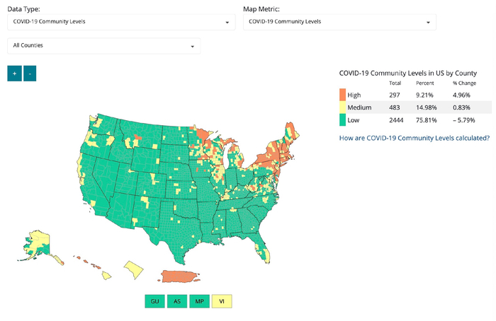 根据美国疾控中心CDC最新的监测数据,BA.2.12.1变异株已经占据了纽约州、新泽西州73.1%的比例。而在全美,BA.2.12.1变异株也已经占据了的比例,这较一周前的42.6%飙升了11.5%。目前还没有证据表明BA.2.12.1会导致比原始奥密克戎毒株其各种子变异体更为严重的症状。
