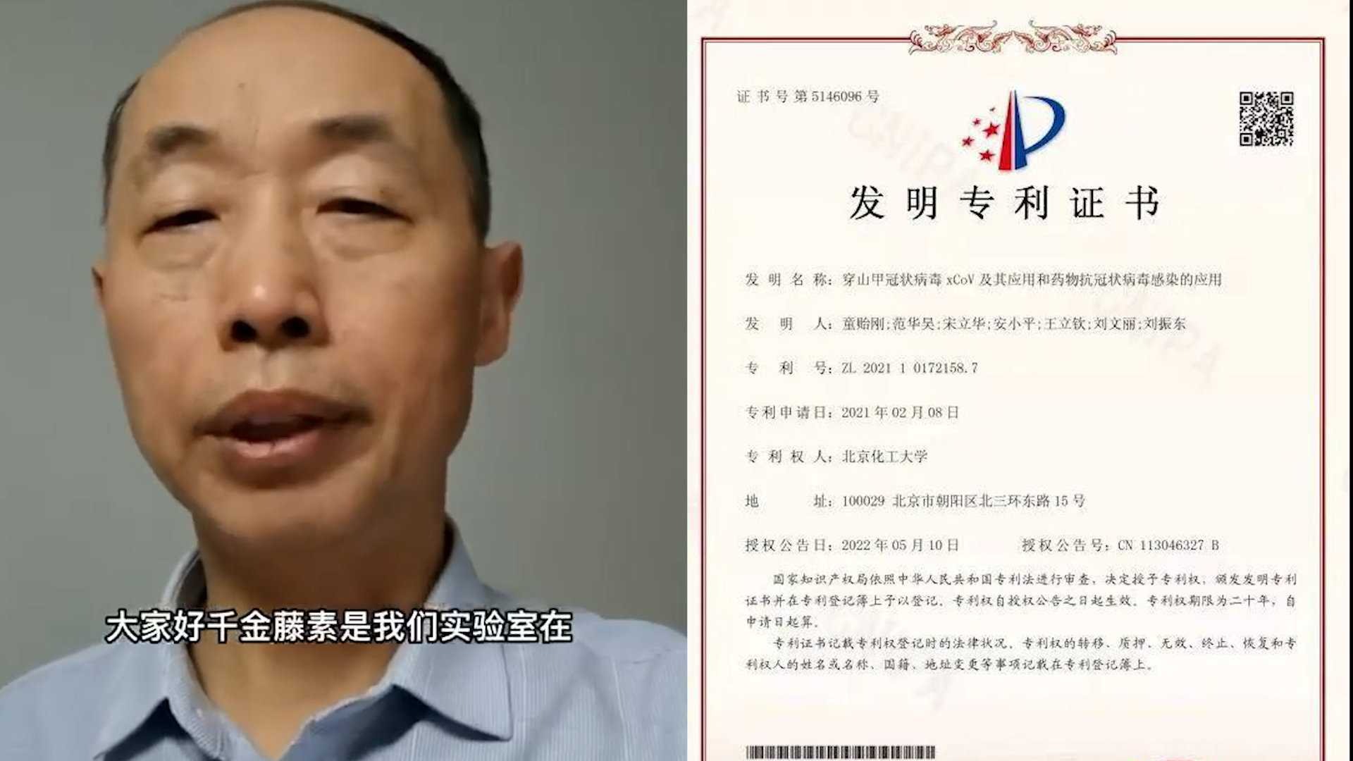 此次被炒作的千金藤素专利,并非千金藤素的化合物专利,而是千金藤素用于抑制冠状病毒的用途专利。2020年1月份新冠疫情暴发后,该专利发明人、北京化工大学童贻刚教授的团队,从几千种已上市药物中筛选出抑制冠状病毒效果最强的一种,就是千金藤素。该团队于当年2月份提交专利优先权,当年3月份发表论文。此后,千金藤素抗新冠病毒的效果被日本、美国等多个实验室验证过。