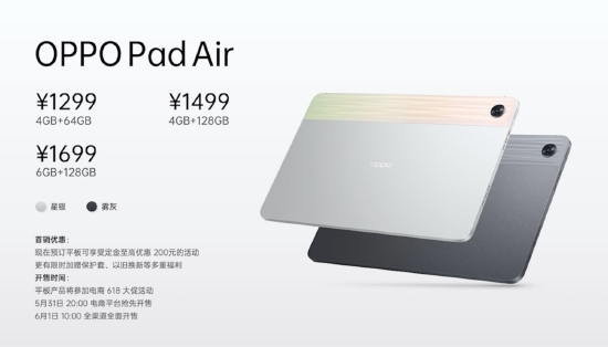 另外,OPPO还发布了全新OPPO 80W车载超级闪充,支持USB-A、USB-C双孔快充,售价199元,首销期间购买用户可享受优惠价179元;全新OPPO Enco R真无线耳机,售价为299元,购买Reno8系列同时购买OPPO Enco R享受立减100元的优惠,5月31日20:00,OPPO商城及天猫商城抢先开售,6月1日10:00,正式开售;OPPO Pad Air有星银和雾灰两种配色,4GB+64GB版本售价1299元,4GB+128GB版本售价1499元,6+128GB版本售价1699元,现在预定可享受定金至高优惠200元的活动,更有限时加赠保护套、以旧换新等多重福利,OPPO Pad Air将参加电商618大促活动,5月31日20:00电商平台抢先开售,6月1日10:00全渠道全面开售。