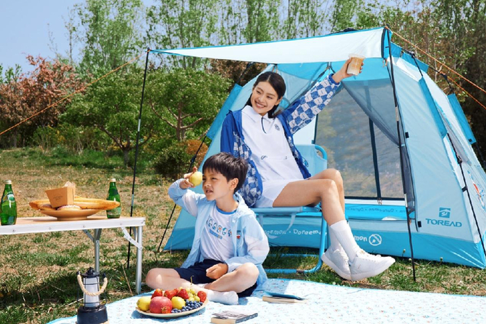 为了露营这张牌能够为户外市场增光添彩,探路者于2022年推出和TEENIE WEENIE 联名的露营产品以及与著名动漫IP哆啦A梦联名的露营产品。同时,探路者在精致露营领域持续发力,推出系列精致露营帐篷产品,还有天幕、铝合金折叠桌、蛋卷桌、月亮椅、折叠床、睡袋、炊具等其他装备。