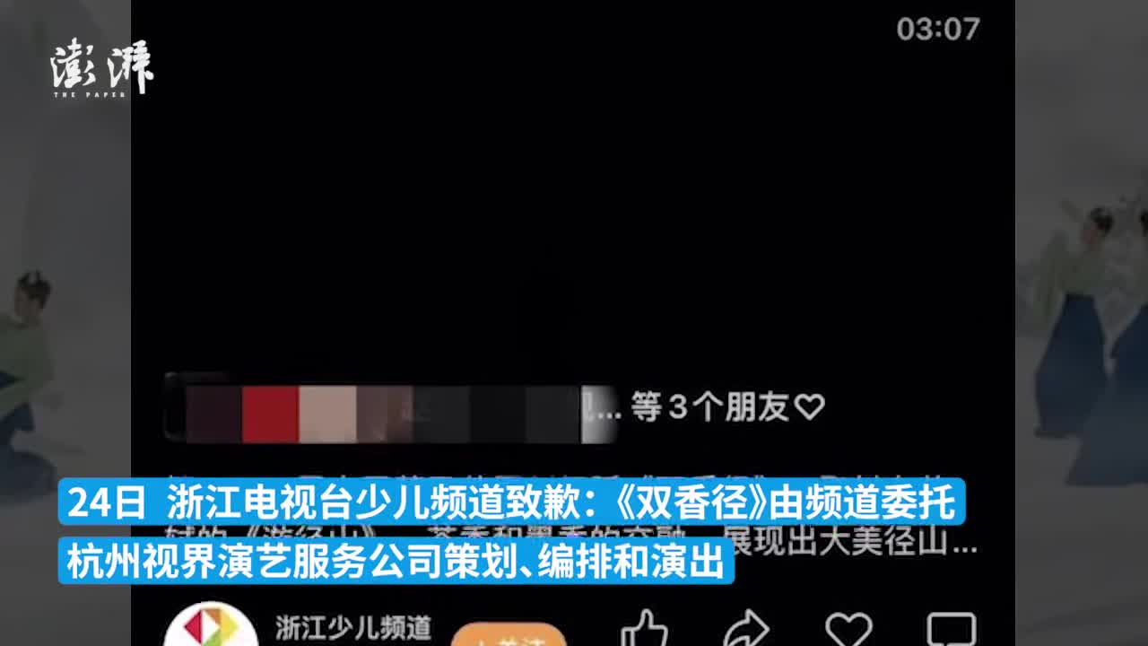 5月23日,浙江电视台少儿频道发布致歉申明,称该舞蹈节目是委托杭州视界演艺服务公司策划、编排和演出,已下架该视频,并已积极联系《只此青绿》的权利人,希望得到谅解并妥善处理。