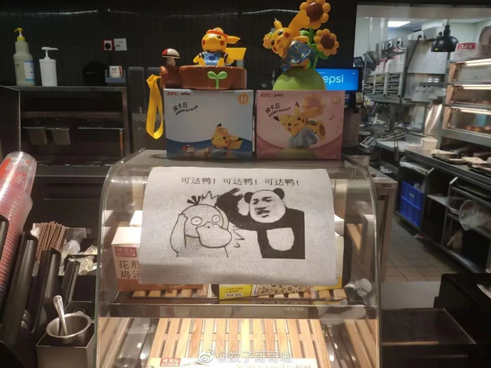 在今年5月21日起肯德基发售的儿童节套餐里会随机附赠一款“精灵宝可梦”形象的音乐盒玩具,其中“可达鸭”款凭借呆萌、魔性的外观,获得了一大批成年消费者的青睐。据新京报报道,肯德基门店相关套餐23日已全部售罄下架,大量消费者涌入二手平台求购“可达鸭”,成交价格也是一路水涨船高,网上甚至出现了外地高价代吃代邮的定制服务。
