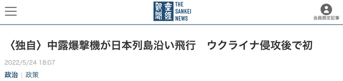 之后是官方表态。法新社报道,日本防长岸信夫称,虽然中国和俄罗斯军机“没有入侵日本领空”,但日本政府已通过外交途径,向俄罗斯和中国就相关举动“表示严重关切”。日本认为,在美日印澳“四方安全对话”(QUAD)领导人峰会期间,中俄联合巡航的举动具有“挑衅性”。