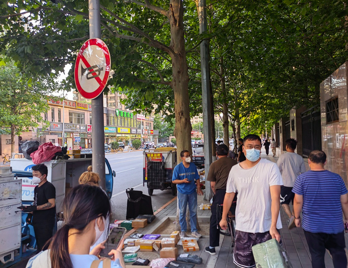 类似画面,近几日开始出现在京城各小区周边。位于管庄的北京新天地小区,自24日起,谢绝快递和外卖员进入。该小区有6000多户居民,每天的快递外卖量不小。也因此,小区周边的摆摊更为“壮观”。
