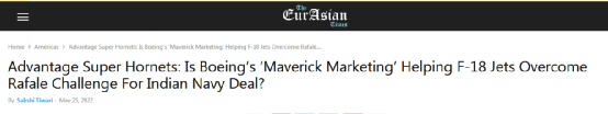 因此《欧亚时报》认为,波音公司很可能是与《壮志凌云2:独行侠》共同从大众文化层面对印度展开宣传攻势,或许有利于其争取外销订单。