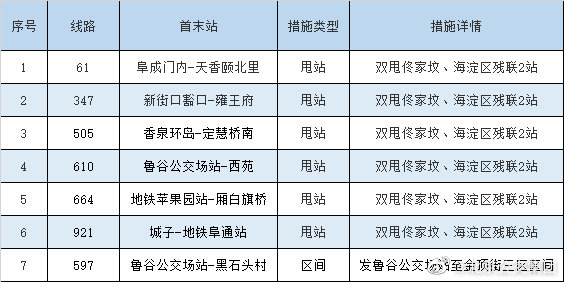 新京报讯 据北京公交集团官博消息,按照防疫工作要求,自5月28日首车起,途经石景山区黑石头村、海淀区四季青镇西冉村区域的7条公交线路采取临时调度措施,详见附表。