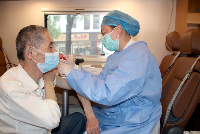 5月24日,疫苗流动接种车开进小区,为居民进行新冠疫苗接种。图/IC