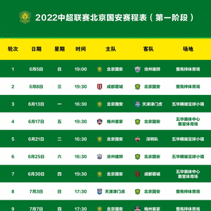5月28日,中国足协正式对外公布2022赛季中超联赛第一阶段(10轮)赛程安排,北京国安队将在梅州赛区开始本阶段比赛。