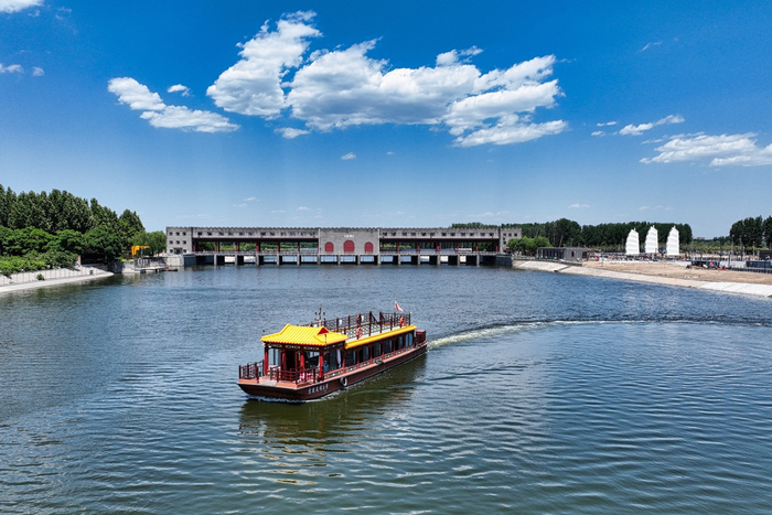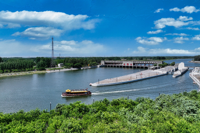 5月30日,随着最后一轮船舶过闸实验结束,位于京杭大运河上的杨洼船闸已具备通航条件,为京冀通航奠定了基础。杨洼船闸是京杭大运河京冀段通航的关键节点工程,5月15日,杨洼船闸进入调试阶段,其中船舶过闸实验为最后一个环节;预计6月,大运河北京通州段和河北香河段将实现旅游通航。图为船舶正在通过杨洼船闸。