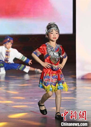 图为孩子们穿着少数民族服装参加走秀。 蒙增师 摄