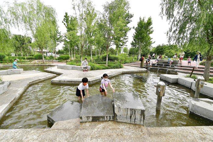 像这样的滨水乐园在副中心可不少。通惠河、潮白河、凉水河、萧太后河等河段的周边环境提升中,均打造了近自然儿童区域,设置儿童活动场地、骑行跑道、健身处等,满足儿童多种活动需求,充满活力与朝气。“十四五”期间,城市副中心还将继续实施水生态系统修复,形成约160公里连续贯通的生态滨水岸线,实现全域水系互联互通、滨水岸线便利可达。