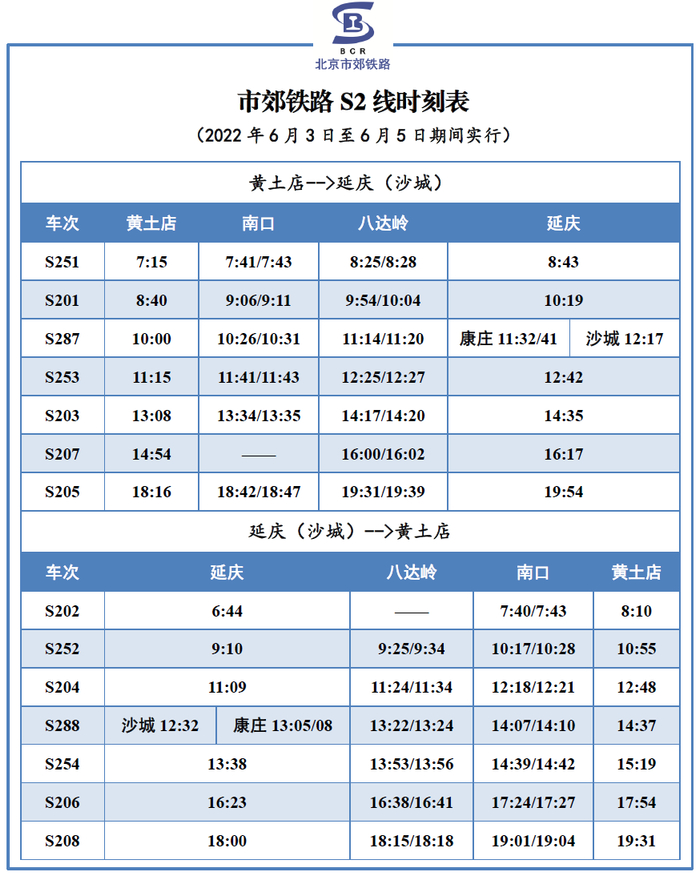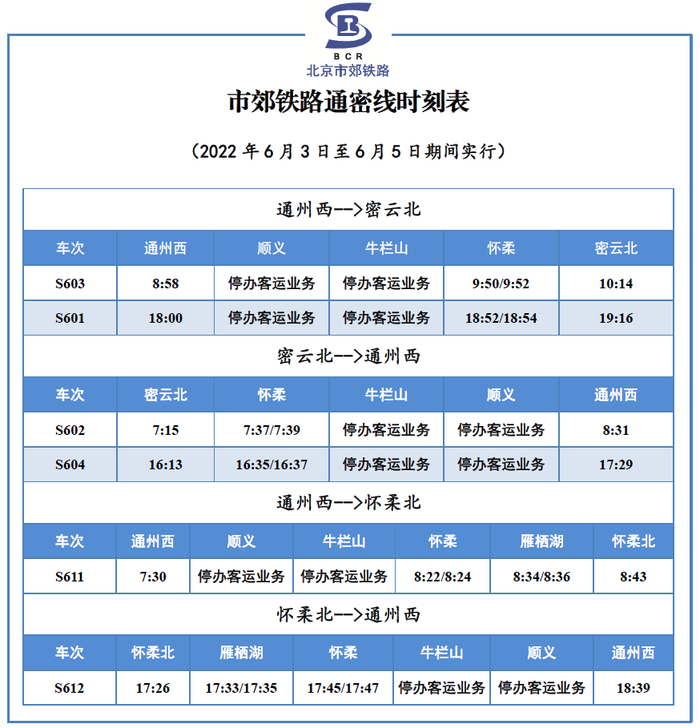 6月6日起,上述三线继续恢复至目前执行的开行方案,即怀柔-密云线4对/日,通密线2对/日,S2线3对/日。