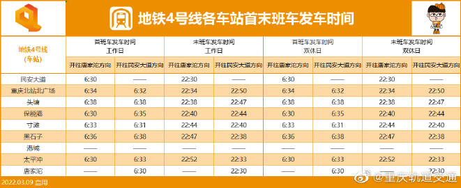端午节期间重庆轨道交通列车运营时刻表来了,赶紧Get!