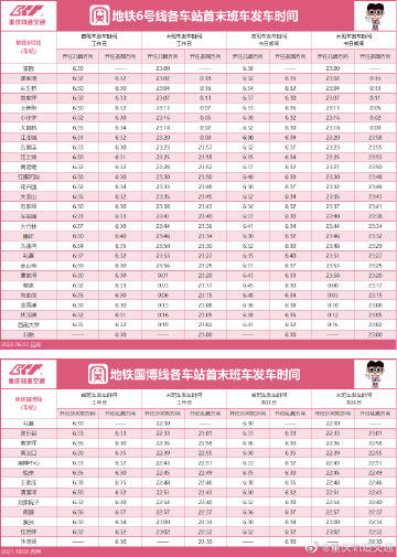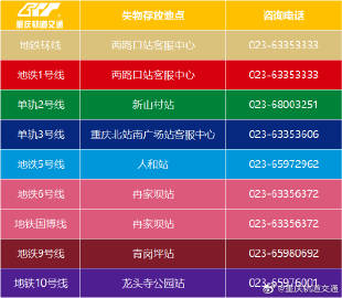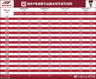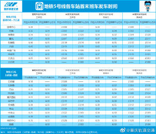 小伙伴们,端午节期间的重庆轨道交通列车运营时刻表来了。6月2日,@重庆轨道交通 发布了最新的重庆轨道交通线各线路首末班车发车时间、线网图、各线路失物咨询电话(更新地铁环线、单轨3号线和地铁6号线)。