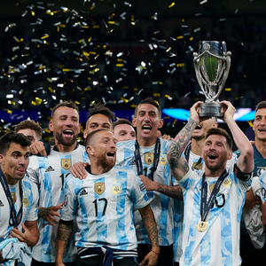新京报讯 6月2日,阿根廷3比0战胜意大利,夺得南美欧洲超级杯冠军。梅西助攻劳塔罗破门,迪马利亚单刀挑射再下一城,迪巴拉替补建功。