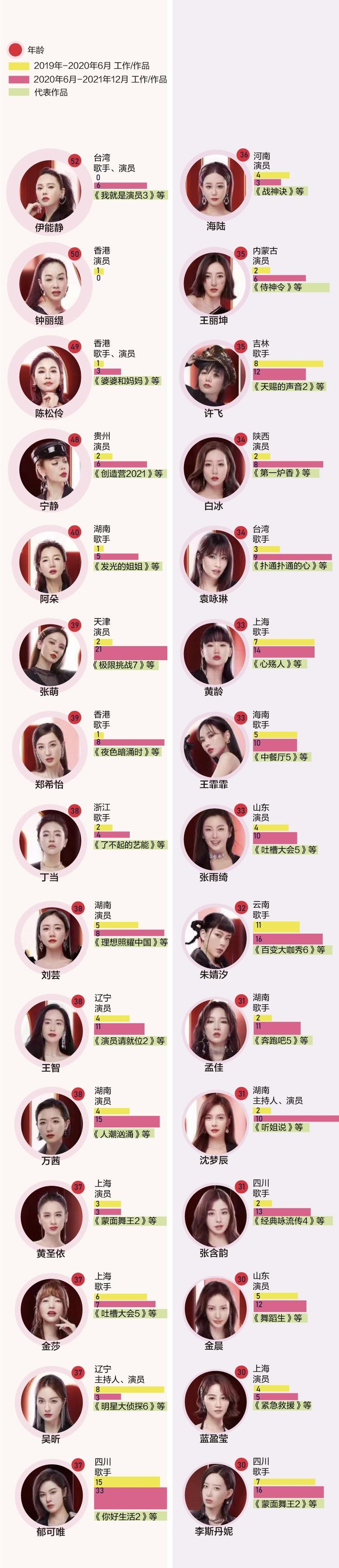 《乘风破浪》第三季“姐姐”数据统计:
