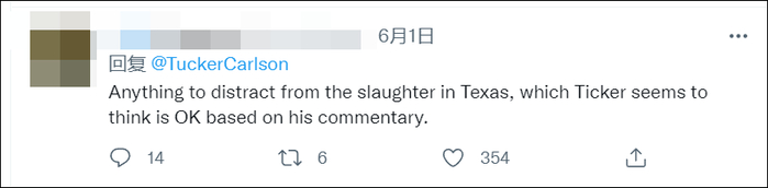 “只要能转移人们对德州屠杀的注意力就行了,从他的评论区来看,这招似乎行得通。”