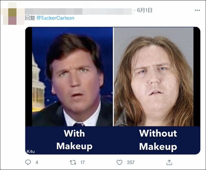 一位推特用户总结道:“所以,最终将塔克·卡尔森打倒的,将会是韩流粉丝。”