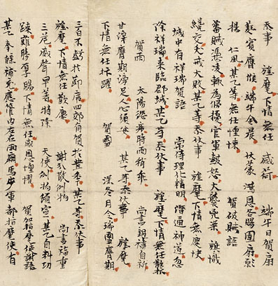 敦煌文献《应用文范》中“端午日贺扇”称:“蕤宾膺候,端午今晨,伏蒙鸿恩,各赐团扇,愿扬仁风。某乙等无任惶悚。”