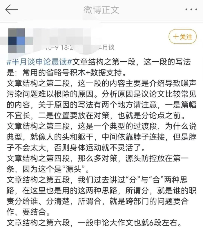 但如果你去问往年70分以上的申论考生,他们反而会更建议你去精读时评文章,去关注标题 (了解写什么)、梳理行文脉络(明确怎样写))、归纳主旨(领悟为何写)、自主总结(举一反三)。