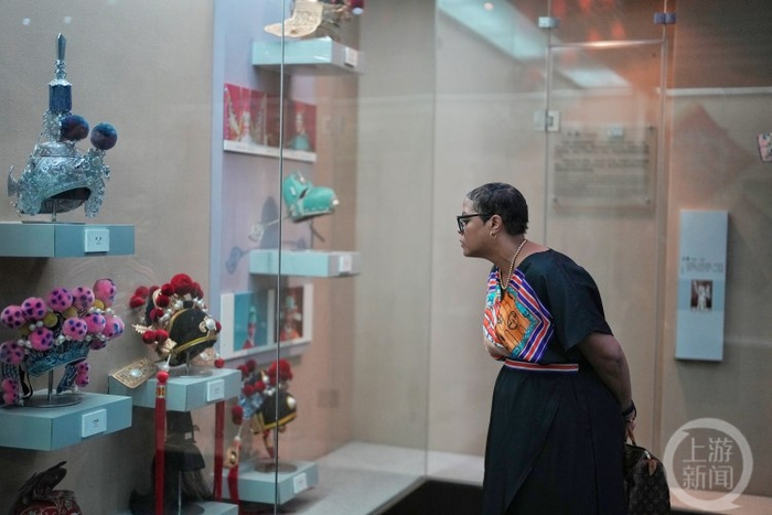 在博物馆内,让师生们最感兴趣的是川剧演出服装,种类繁多的川剧服装不仅能够表现人物的身份、年龄等,还展示了中国纺织、设计、裁剪技能和精美的刺绣工艺。