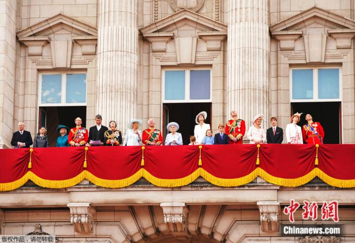 当地时间6月2日,英国王室成员在伦敦白金汉宫的阳台上观看阅兵仪式。