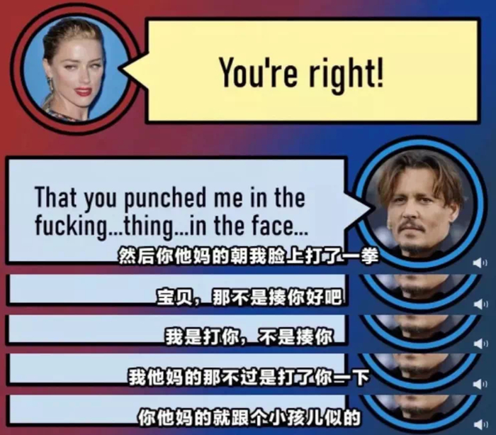 但是要知道德普在这段关系中,从来也不是一个任凭欺凌,无力反抗的受害者。亲密关系之间的暴力有时是流动的,自称受暴者的人也未必没有使用过暴力。在艾梅柏晒出的视频里,德普也曾恶语相向,摔东西。或者使用冷暴力,直接走掉。德普的同事证实,和艾梅柏一起旅行时,德普会请他们帮忙开两个房间,以便在两人发生冲突时,他有处可去。