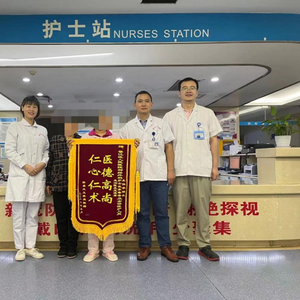 患者陈女士,55岁,左侧面部抽搐8年,诊断面肌痉挛。8年来,面肌痉挛严重影响了陈女士的生活。其先后就诊于重庆市多家医院,予口服“卡马西平、面针针刺、肉毒素注射”等多种治疗后均无好转,于不久前求助于綦江区人民医院神经外科团队。通过麻醉科及神经外科团队的精诚协作,为陈女士成功地实施了微血管减压术,术后陈女士面部抽搐已完全消失,于近日顺利出院。陈女士对于神经外科团队给予了充分肯定,出院时赠送全体医护人员一面锦旗以表达感谢之情。