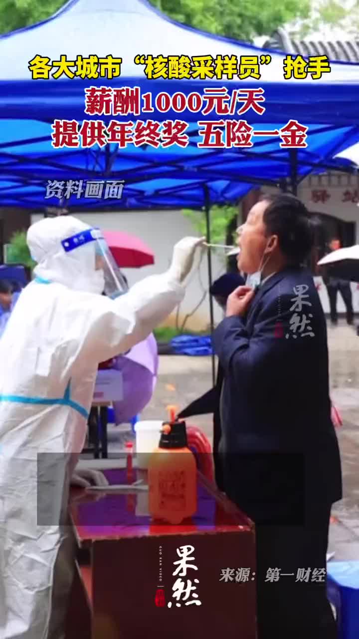 各大城市“核酸采样员”抢手,有薪酬1000元/天
