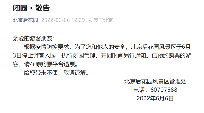 根据疫情防控工作要求和部署,目前北京市多家景区恢复营业,部分景区临时关闭,交通运营有所调整,市民出行请注意。