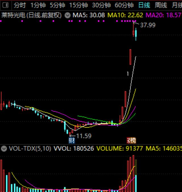 值得注意的是,莱特光电录得4个20CM涨停,期间涨超107%。
