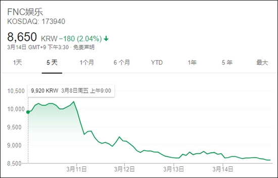 经历此事,YG娱乐与FNC娱乐的股票持续下跌。YG娱乐的股价受影响最大,仅11日上午就下跌了12.83%,市值仅仅两天就从7860亿韩元(约47亿元人民币)下跌至6756亿韩元(约40亿元人民币)。