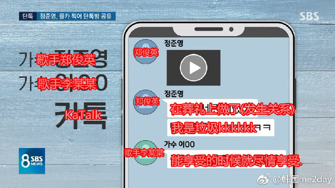 据悉,里面的所有成员都和胜利有合作关系,其中,韩媒重点点名了歌手郑俊英,据悉,他还曾经在聊天群里详细解说整个“不可描述”的过程。