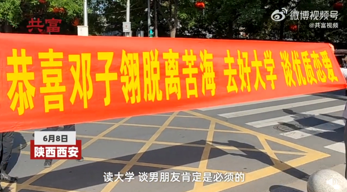 爸爸考点门口拉横幅喊女儿谈恋爱