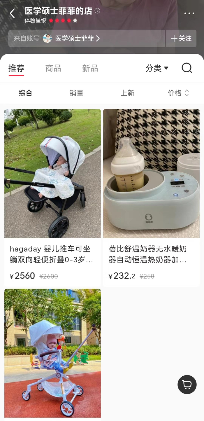 此外,红星资本局注意到,还有简介为三甲医院主治医师的小红书达人在售卖婴儿推车、热奶器等母婴用品。
