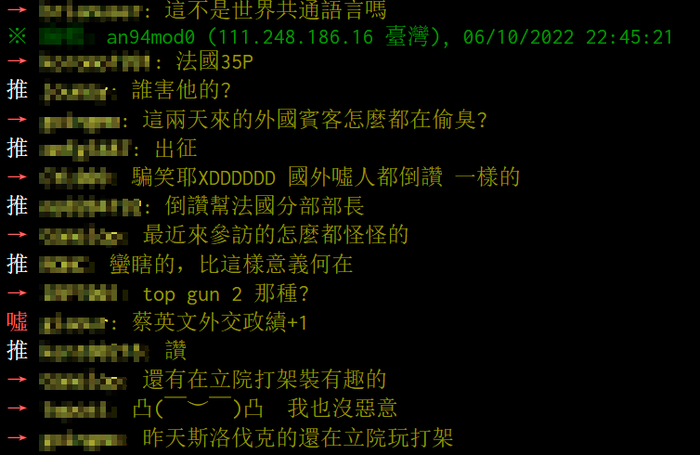 6月9日,斯洛伐克议员窜访台湾时,在“立法院”当着台湾官员的面摆出打架的姿态模拟蓝绿多次上演的“全武行”画面。岛内绿媒报道此事时一副与有荣焉的模样,称“台湾蓝绿打架超红”,斯洛伐克官员举动“重现经典”。岛内网民则愤怒质问:“民进党真的不觉得丢脸吗?”