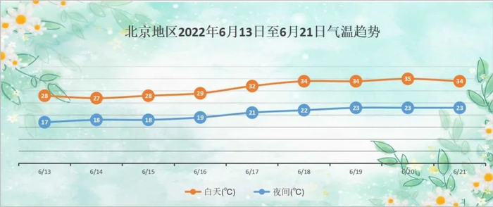 下周整体以多云到晴天气为主,周前期仍将有分散性阵雨或雷阵雨天气,气温逐步回升,白天最高气温在27~34℃之间,夜间最低气温在17~23℃,降雨过后,清凉逐渐退去,周后期暑热重返京城,大家要及时关注天气变化,适时调整着装。