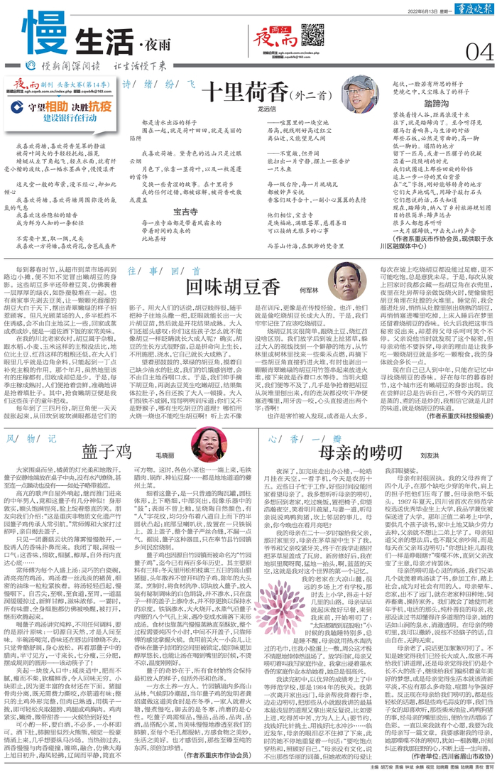 也许是害怕被人发现,或者是人太多,每次在坡上吃烧胡豆都没能过足瘾,更不可能吃饱,总是意犹未尽。于是,每次从坡上回家时我都会藏一些胡豆角在衣兜里,夜里在灶房帮母亲做饭烧火时,便偷偷把胡豆角埋在灶膛的火堆里。睡觉前,我会溜进灶房,悄悄从灶膛里刨出烧熟的胡豆,再悄悄塞进嘴里吃掉,上床入睡后在梦里还留着烧胡豆的香味。长大后我把这事当秘密说出来,却惹得父母乐呵呵笑个不停。父亲说他当时就发现了这个秘密,但母亲劝他不要拆穿,母亲的理由是让我多吃一颗烧胡豆就是多吃一颗粮食,我的身体就会多长一点。