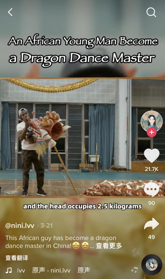 来自多哥的留学生奥斯汀舞龙的视频也一度走红。奥斯汀表示,自己通过舞龙结交了许多中国朋友,更加理解了中国和中国文化,也重新理解了自我。