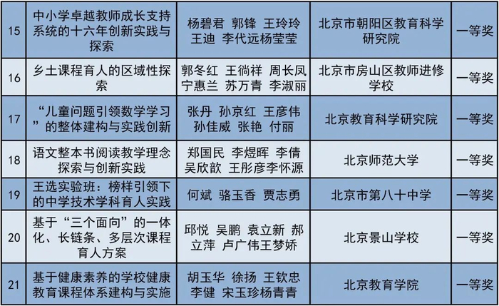 北京市基础教育教学成果奖获奖名单公示!这些学校上榜