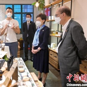 中新网香港6月14日电 香港特区行政长官林郑月娥14日与香港特区政府商务及经济发展局局长邱腾华到访PMQ元创方。林郑月娥表示,在过去两年多新冠疫情的影响下,香港多项大型创意旗舰项目须取消或延期,期盼民、商、官三方在未来的日子继续努力,将香港打造成一个更宜居、更宜游的国际都会。