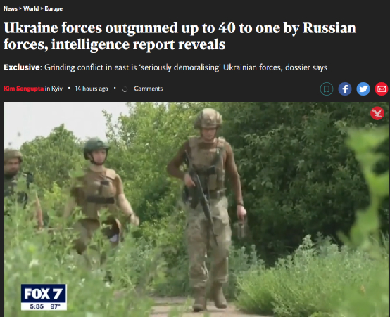 英国《独立报》9日则报道称,新的情报显示,由于俄军在火炮数量上20倍于乌军、在弹药数量上40倍于乌军,乌克兰军队在前线正蒙受巨大损失。报道称,“这一新情报描绘出一幅关于前线冲突悲惨而绝望的画面”。