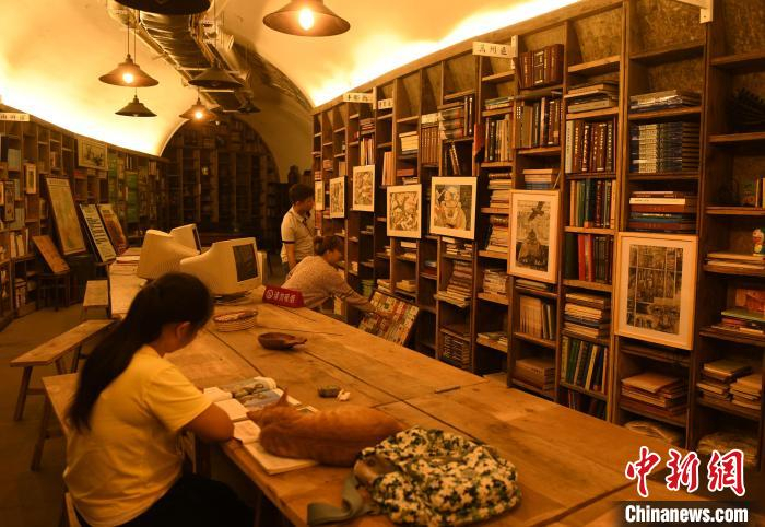 图为重庆一防空洞被改造成书屋,吸引民众前往。 周毅 摄