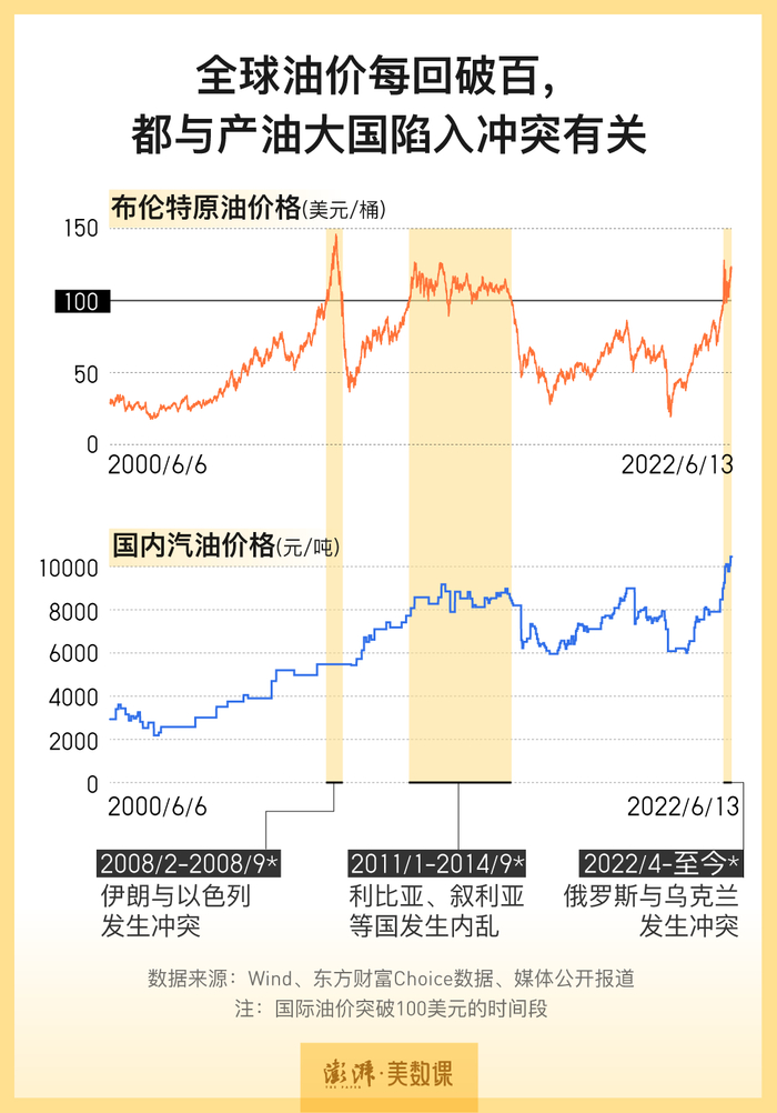 其实,回顾历次国际油价过百的原因,也都和战争紧密相关。