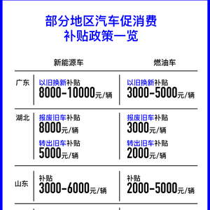 广州、深圳、珠海等地发放的“现金红包”均仅针对新能源车;山东、广东等地对新能源车给出约两倍于燃油车的补贴额度;还有北京、上海、湖北等地,则针对置换新能源车给出补贴。