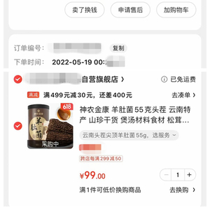 还有消费者给中新财经提供的订单记录显示,5月19日在某电商平台上购买的羊肚菌,显示每盒单价是97.7元,买了2盒,领了20元优惠券后,共消费175.4元。在6月16日同一商家同一产品显示单价是99元,还没有了20元优惠券,即便也可减去20元优惠,同样买2盒也需要消费178元。