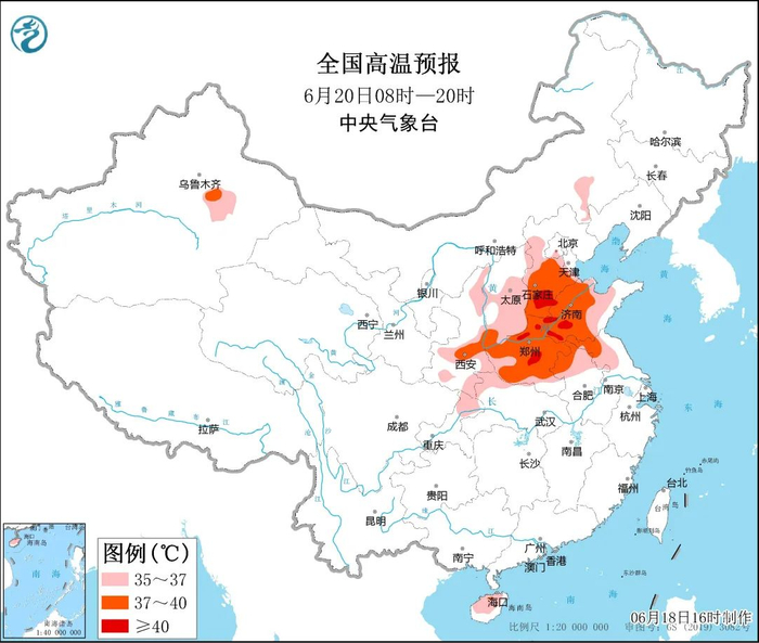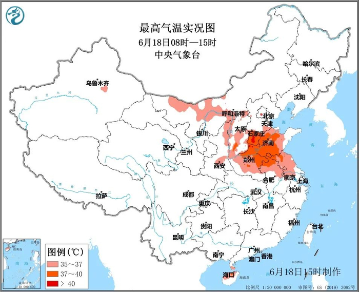 气象数据监测显示,今天,内蒙古中西部、陕西东北部和中部、山西、河北南部、河南、山东中西部、安徽中北部、浙江中北部等地出现35℃以上高温天气,河北南部、河南北部和东部、山东中西部、安徽北部等地部分地区38~40℃,河北邢台41.4℃。