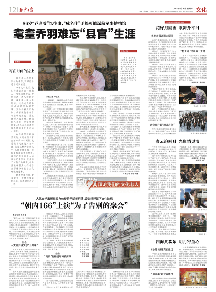 现如今文艺界的事情,老人家已很少过问了。听说当下的有些词作家很“高产”,脑袋一转就能划出一首歌词,乔老爷冷不防脱口而出:“人家那叫有才啊!我可不行,写不出来!”久违的浓重山东乡音,有些低沉、沙哑。